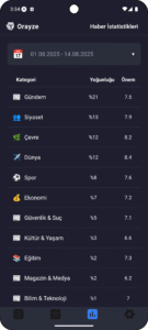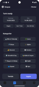 - Mobil app: Haber akışı, push bildirim, offline okuma, kategori filtreleme, mini istatistik, Dark/Light Tema
