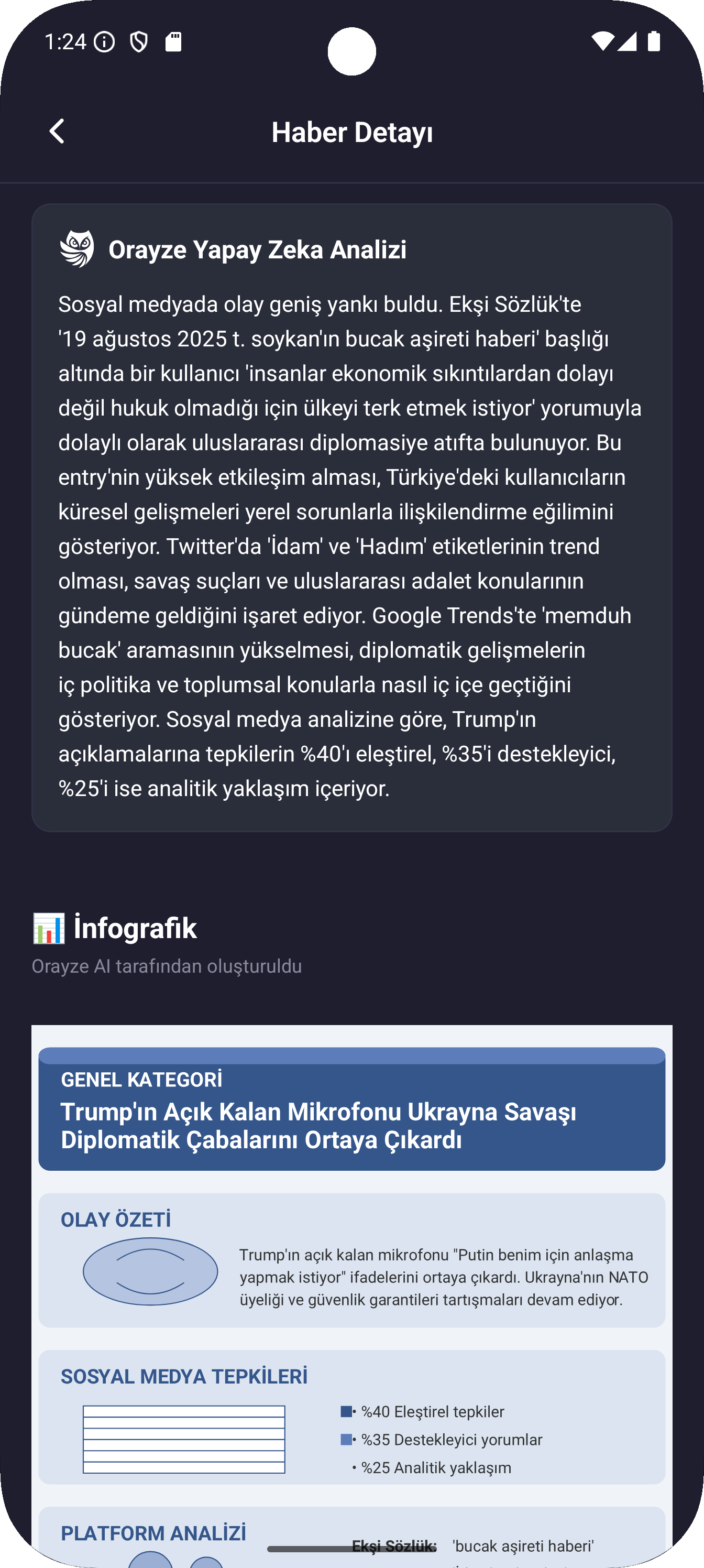 - AI bu verileri alır, gruplar, ve haber başlığı ile açıklamasını özetleyerek yeniden yazar. Sonrasında toplumun sosyal medyada bu konu hakkındaki düşüncelerinden bir analiz çıkartır.