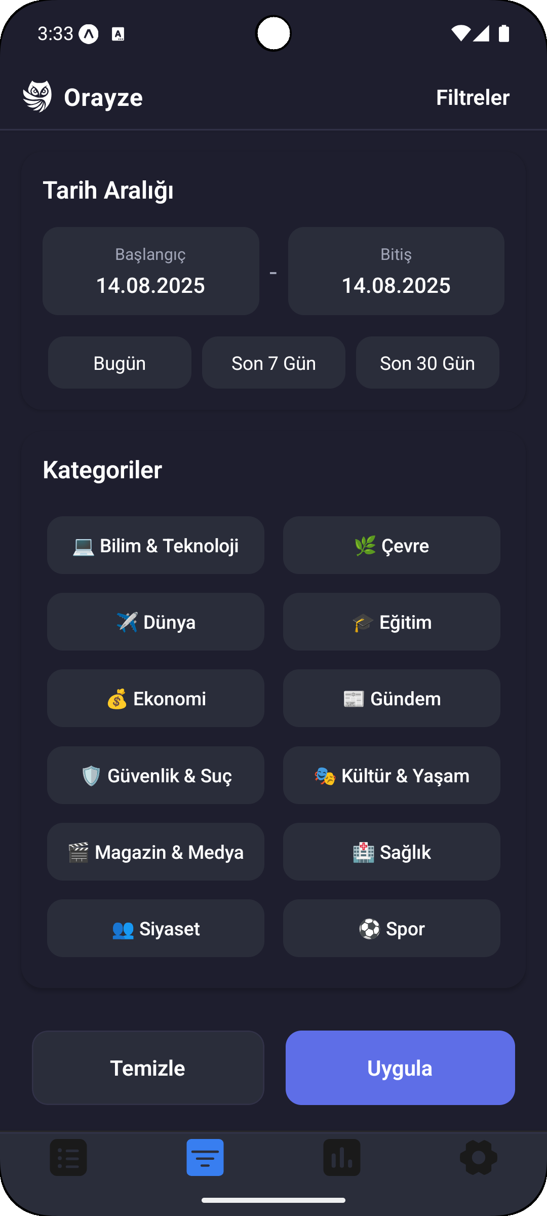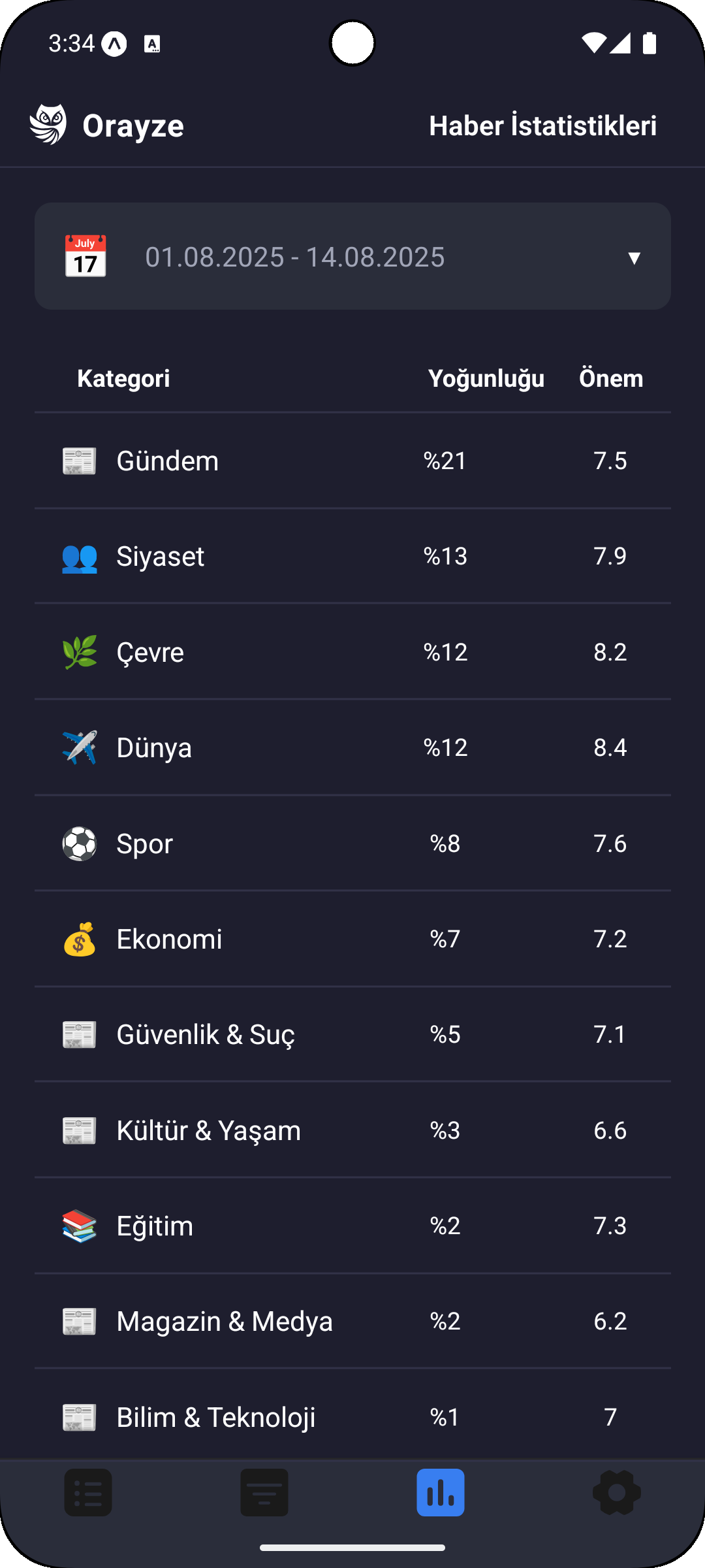 - Mobil app: Haber akışı, push bildirim, offline okuma, kategori filtreleme, mini istatistik, Dark/Light Tema
